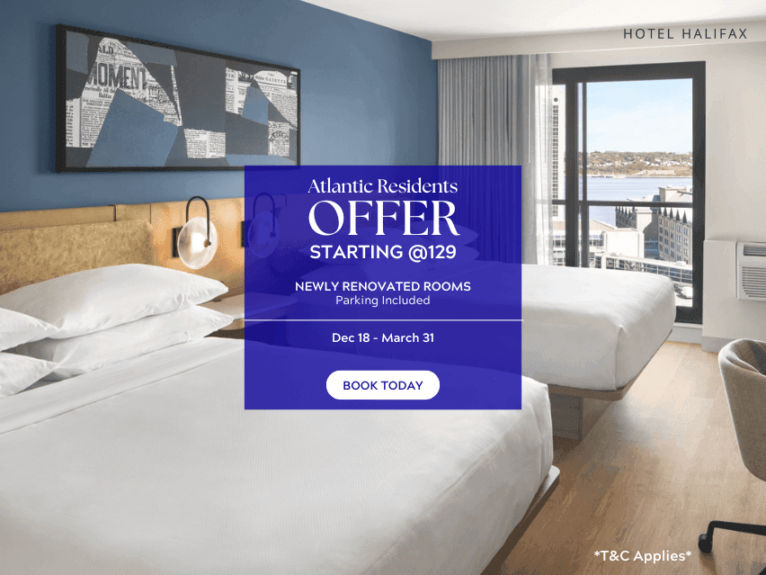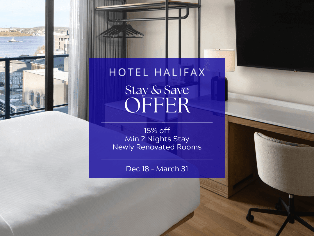 We’re celebrating our Atlantic roots with an exclusive offer for residents of Nova Scotia, New Brunswick, Prince Edward Island, Newfoundland, and Labrador. Be among the first to enjoy our newly renovated rooms with rates starting as low as $129, plus free parking for one vehicle ($30 value) when you book directly with us.